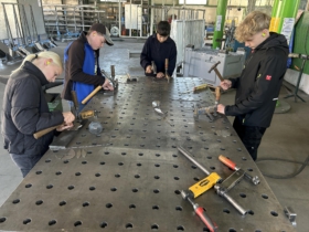 Alle vier Schüler verbindet die Freude am Tüfteln, Schrauben und Selbermachen – beste Voraussetzungen also für einen spannenden Tag im Metallhandwerk.